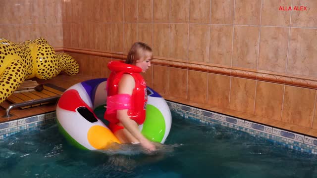 Alla hot fucks a big inflatable ring in the pool and gets an orgasm and wears an inflatable vest and bandages!!!